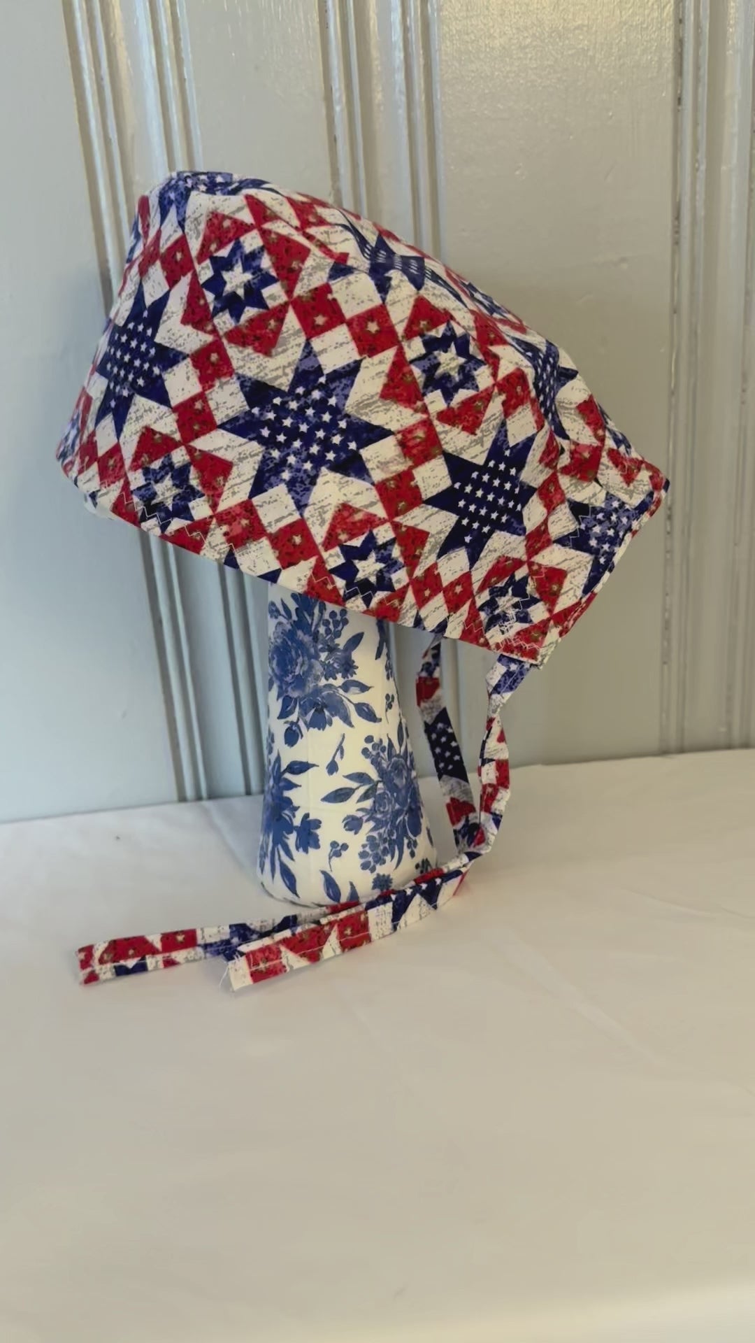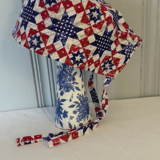 American Patchwork Quilt Printed Scrub Cap – Fun Tie-Back Surgical Hat – Adjustable Tie - Back Surgical Hat - Scrub Cap