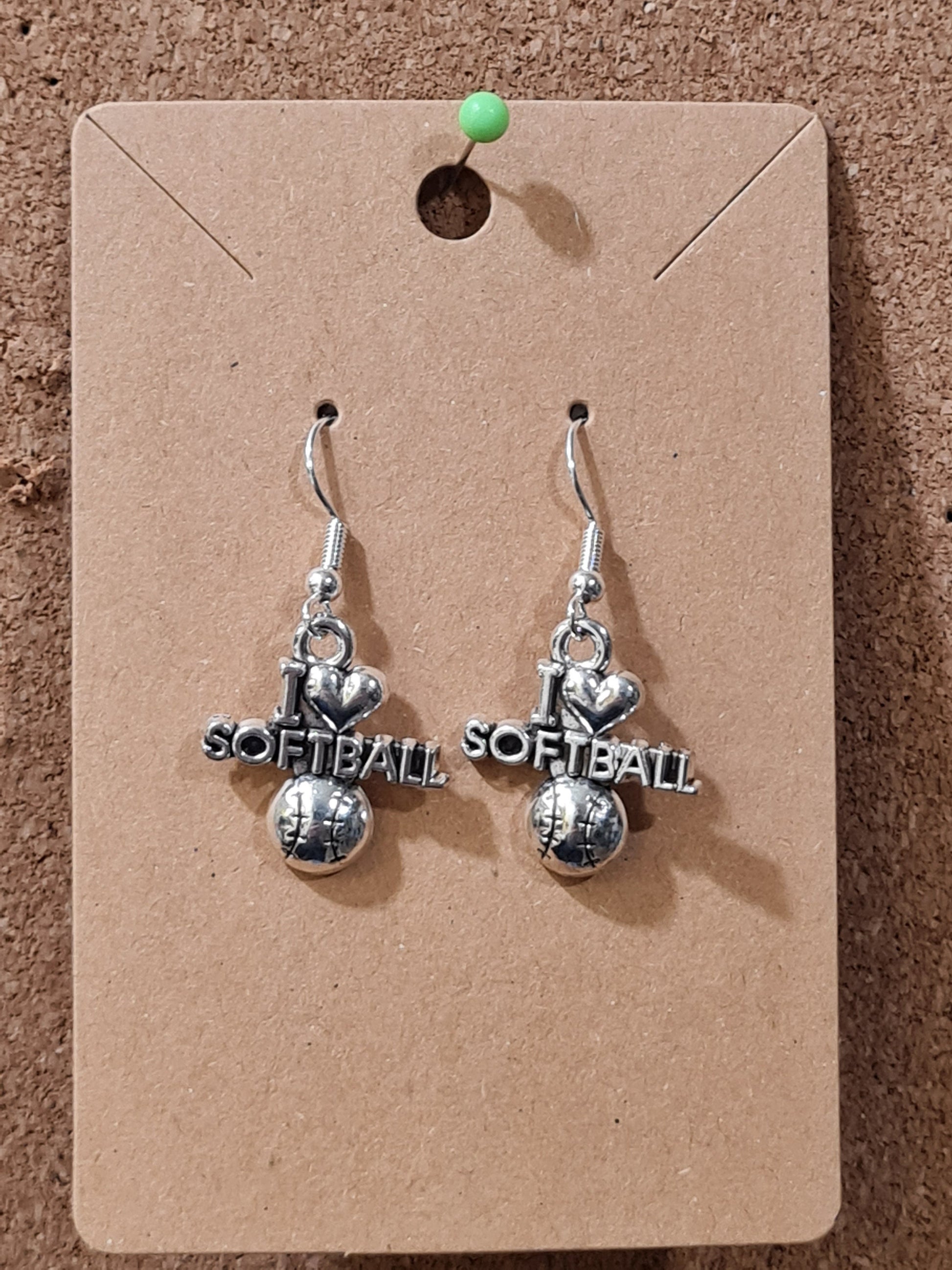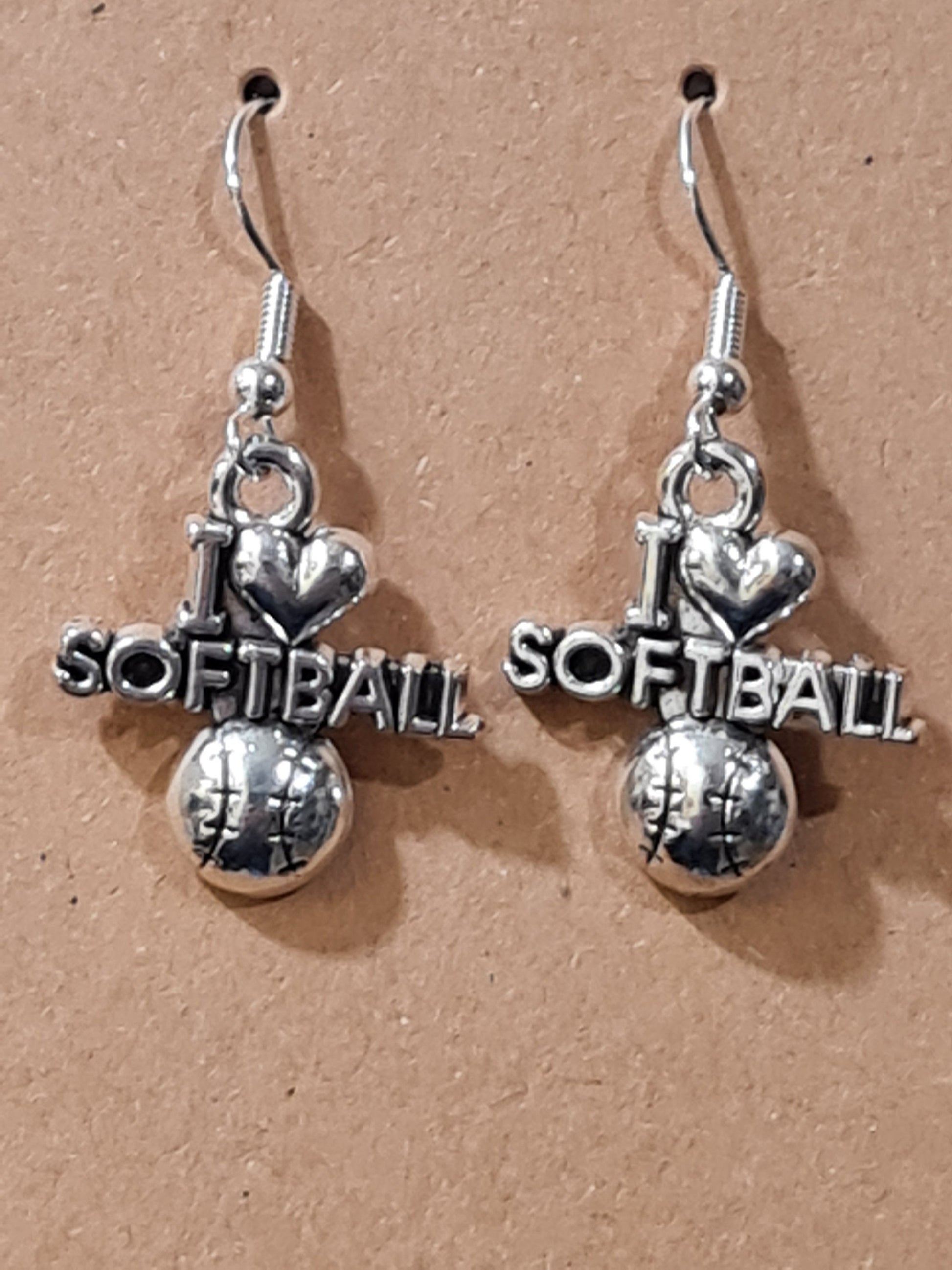 I Love Softball Earrings ~ Stainless Fish Hook Posts