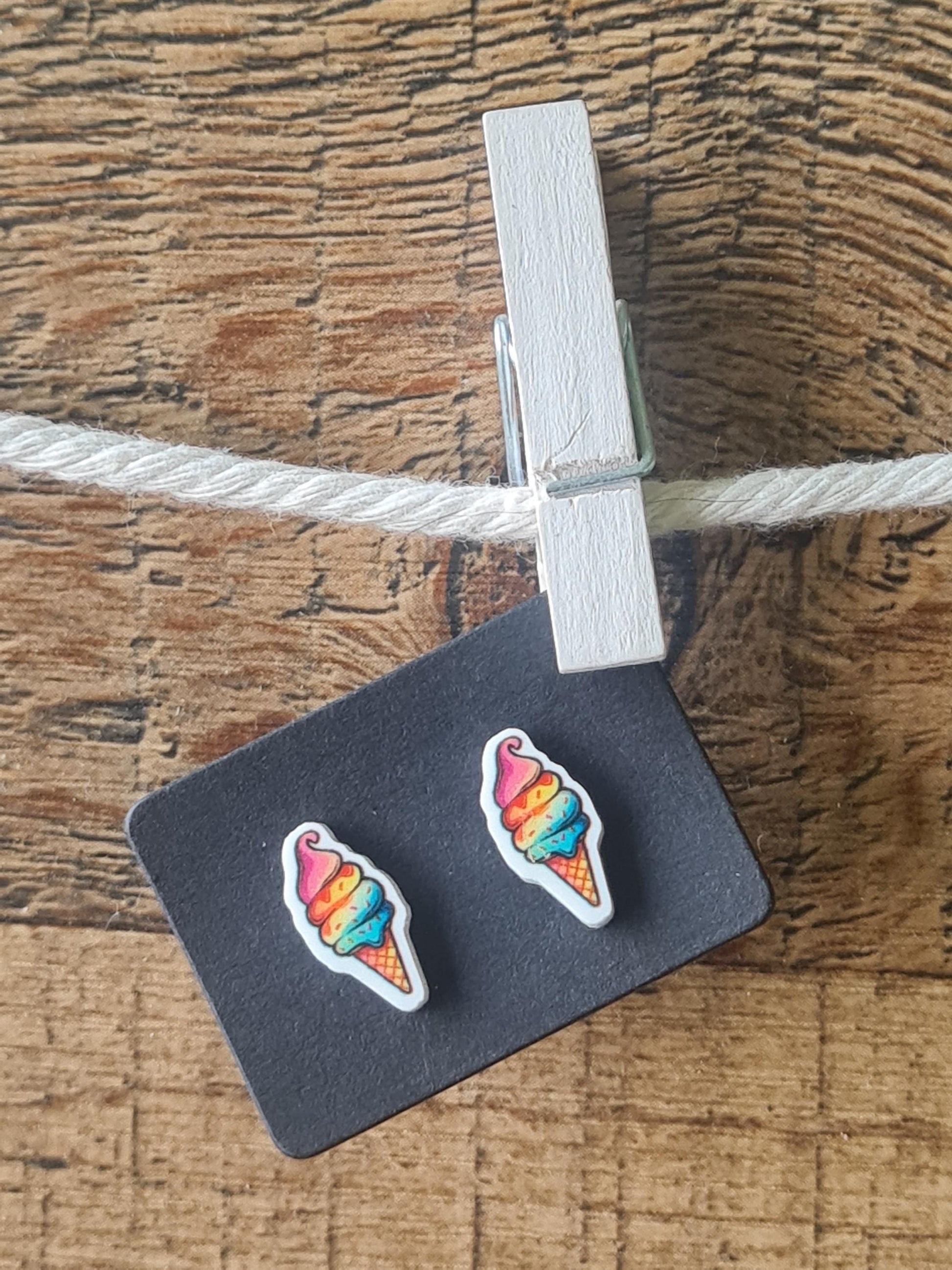 Ice Cream Cone Earrings ~ Ice Cream Earrings ~ Summer Time Earrings ~ Post Earrings ~ Summer Time Treat ~ Soft Serve Ice Cream Earrings