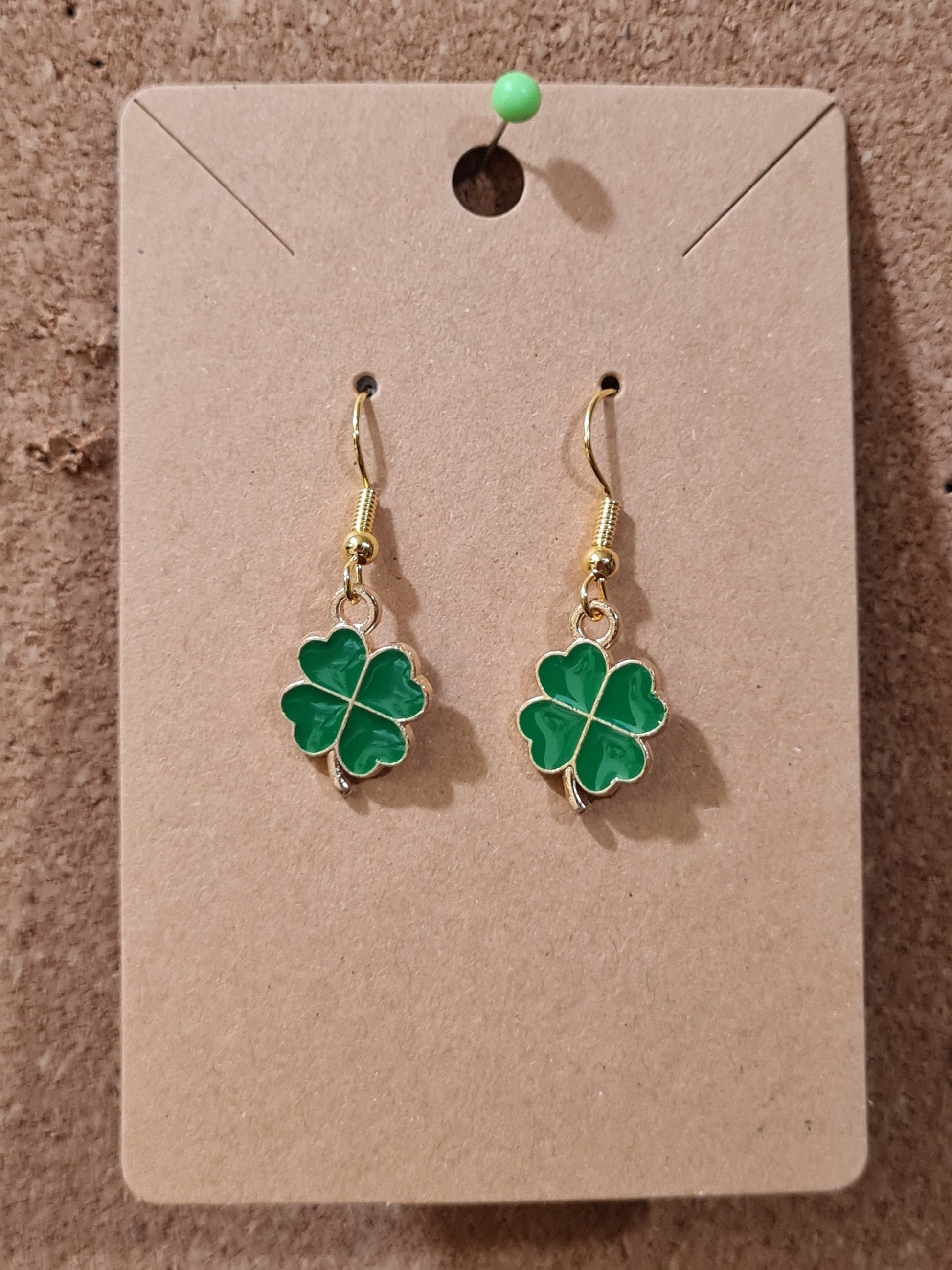 Ya'll will feel lucky all day long wearing these little four lead clovers! They have fish hook posts with the stoppers on the back to prevent loss. The entire earring is approximately 1.25" in length. These are handmade and packaged. Please let me know if you have any questions or interest in this item or any others.